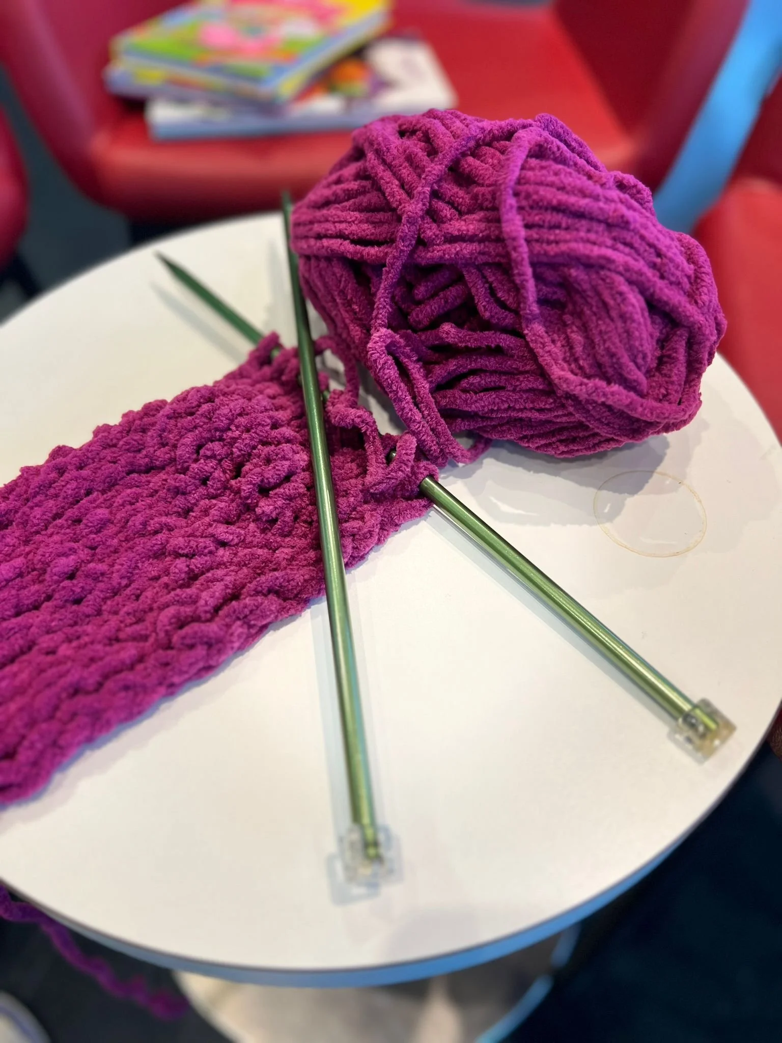 Participants can connect with others, enjoy a calm and creative space, and contribute to those in need: all the blankets and shawls we make together are donated.